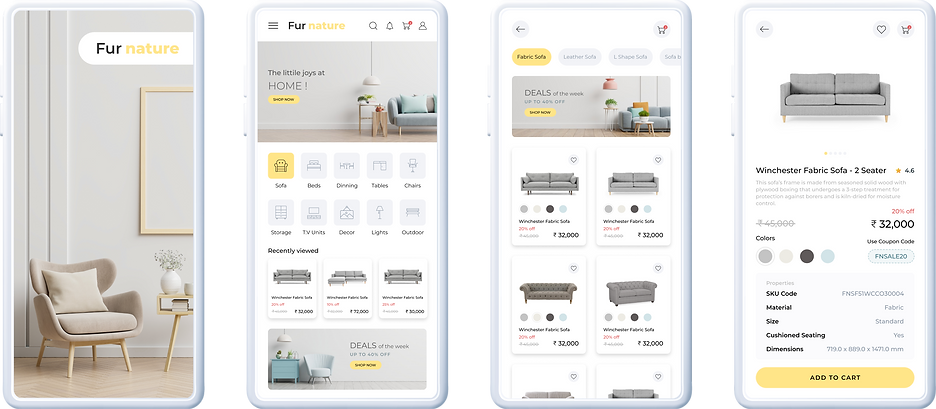 Furnature is an ecommerce app to shop furniture in best deals and offers. Helps to find right interiors and furniture for your dream home. Can find wide range of collections in furniture which are required to fullfil your home interiors.